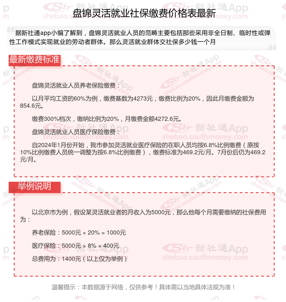 一、2024年盘锦灵活就业社保缴费标准表 盘锦灵活就业社保多少钱一个月?