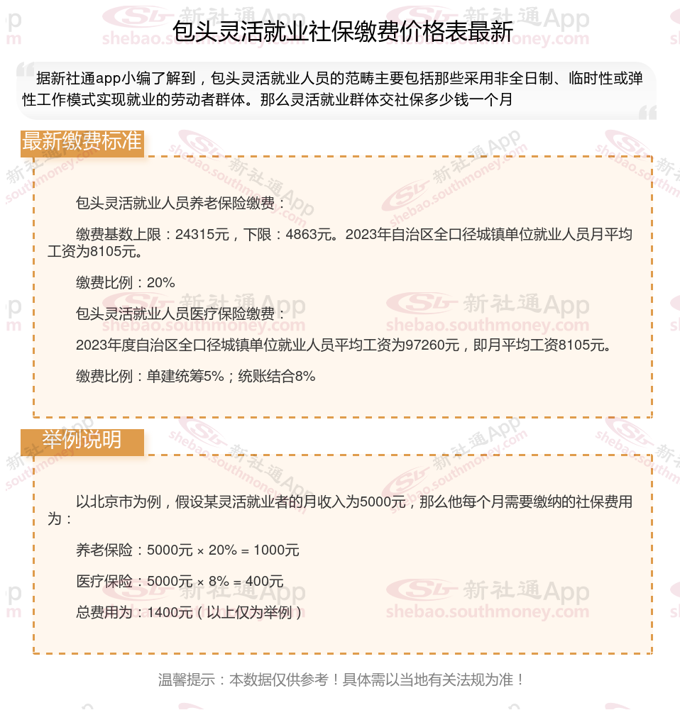 一、2024年包头灵活就业社保缴费基数、比例最新消息
