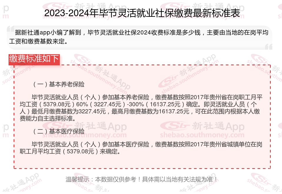 二、毕节2024年灵活就业社保缴费基数、比例最新消息