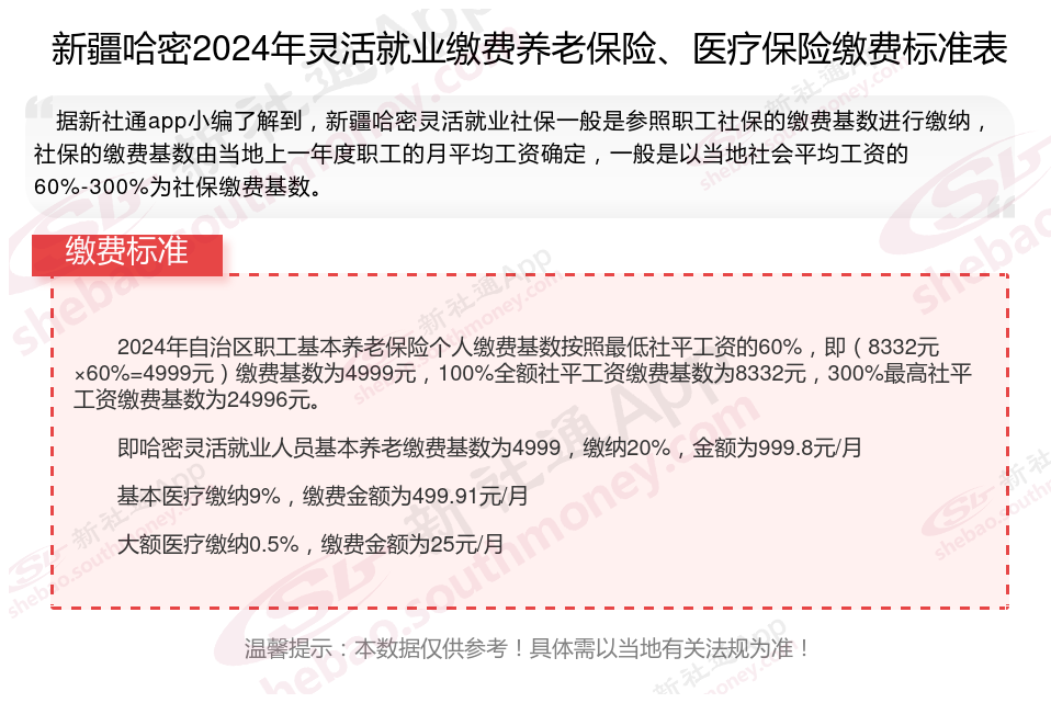 二、新疆哈密2024年灵活就业社保缴费基数、比例最新消息