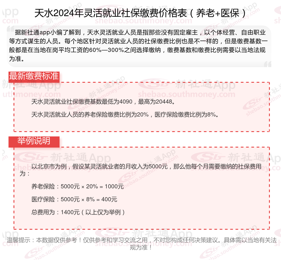 二、2024年天水灵活就业社保缴费标准表 天水灵活就业社保怎么交?