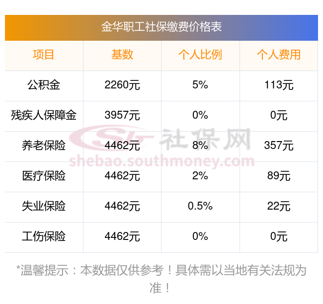 一、金华职工社保缴费多少钱?金华职工社保缴费基数最新参考为:3579.00,具体如下: