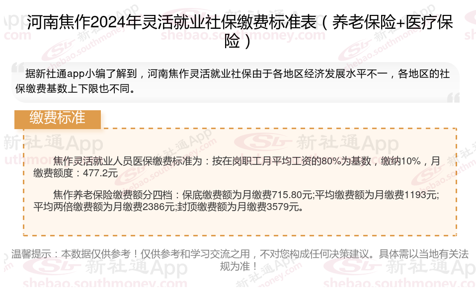 一、2024年河南焦作灵活就业社保缴费标准表 河南焦作灵活就业社保多少钱一个月?
