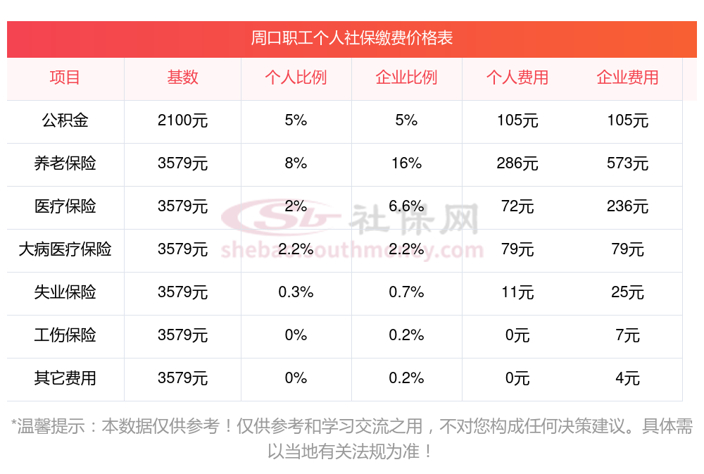 据新社通app显示,周口社保缴费基数2023-2024年标准,(社保最低一个月要交多少钱)周口社保费用如下:
