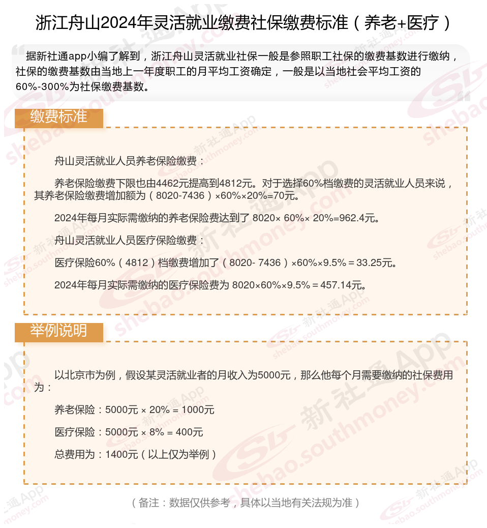 随着经济的发展和社会的进步,灵活就业人员越来越多,但是很多人不知道如何缴纳社保。本文将介绍2024年浙江舟山灵活就业人员社保缴费基数及如何缴纳社保,能领取多少钱,帮助大家更好地了解灵活就业社保,随着新社通APP小编一起了解浙江舟山灵活就业社保缴费最新资讯吧。
