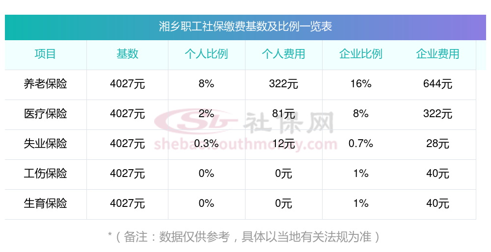 一、湘乡社保缴费基数是多少?各种保险的缴纳比例和费用是怎么样的?