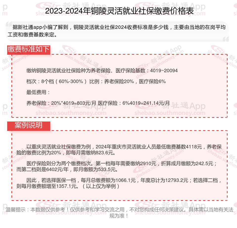一、2024年铜陵灵活就业社保缴费标准表 铜陵灵活就业社保多少钱一个月?