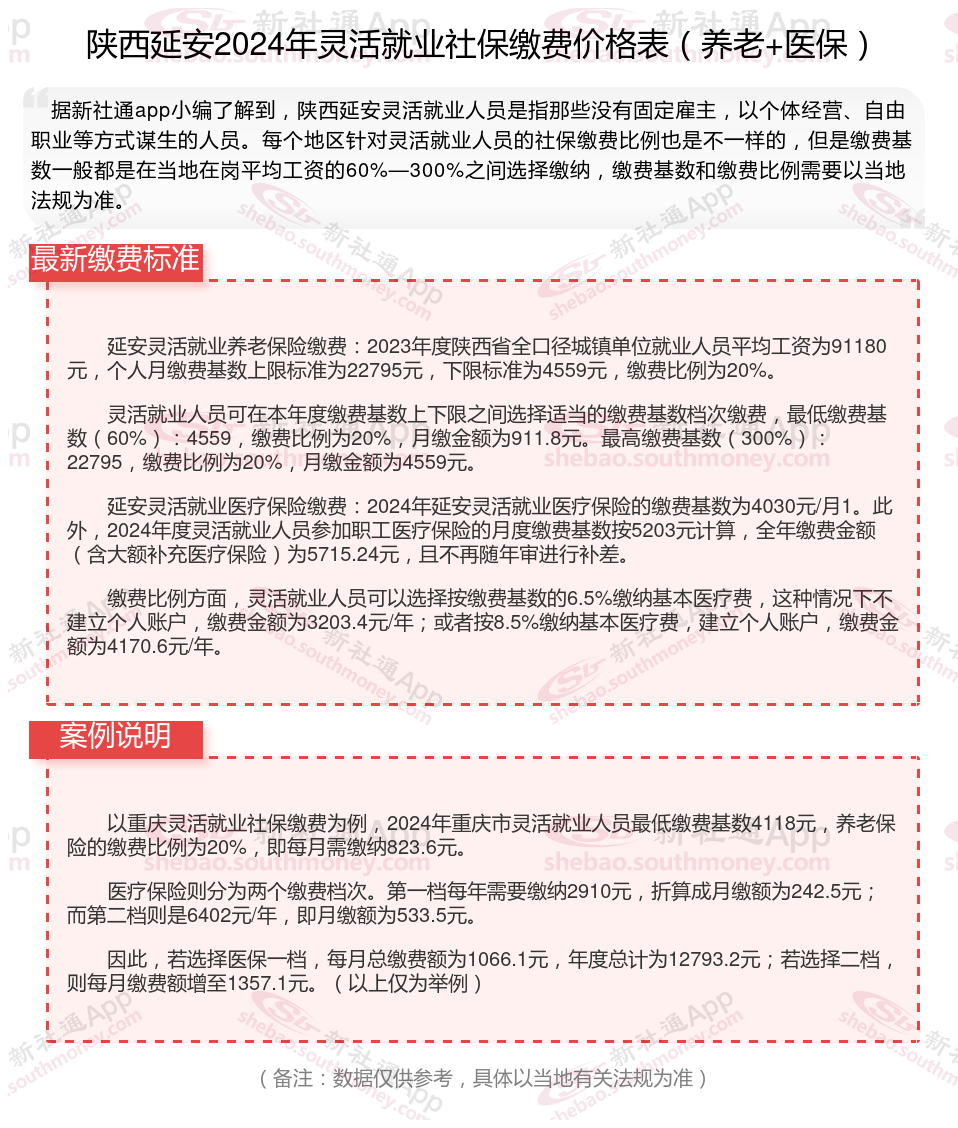 二、陕西延安2024年灵活就业社保缴费基数及比例最新消息