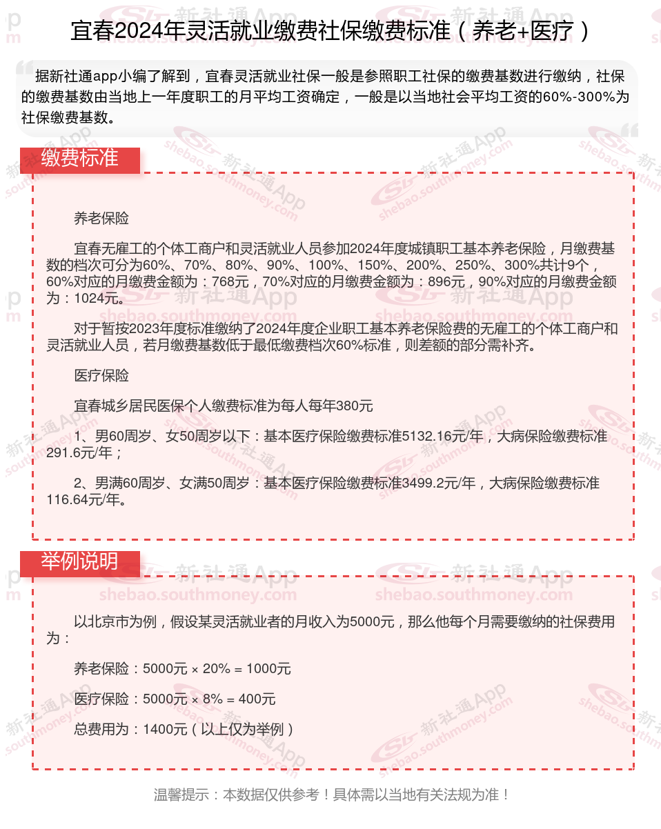 二、宜春2024年灵活就业社保缴费基数、比例最新消息
