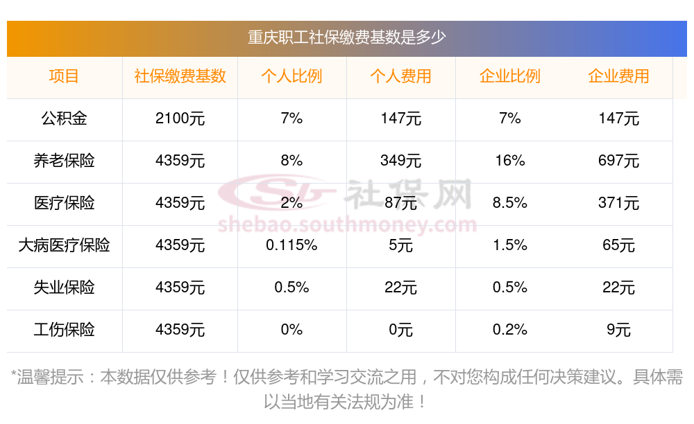 2025年重庆社保缴费多少钱?下表是2024-2025年重庆社保费用明细参考,新社通app-社保缴费查询工具提供的最新数据如下: