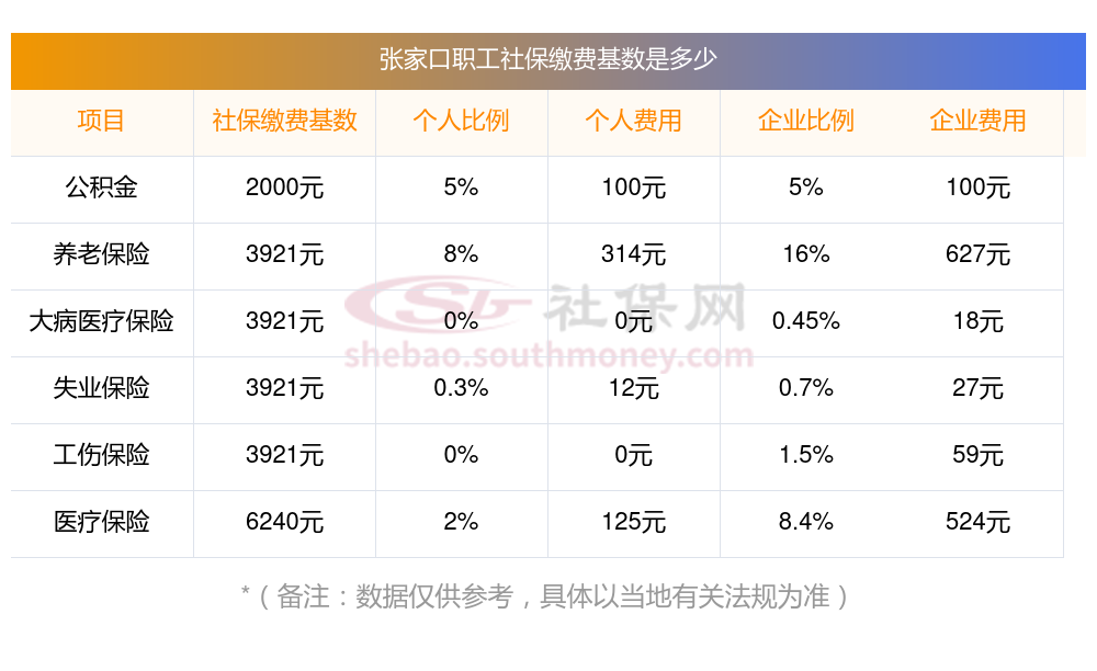 2025年张家口社保缴费多少钱?下表是2024-2025年张家口社保费用明细参考,新社通app-社保缴费查询工具提供的最新数据如下: