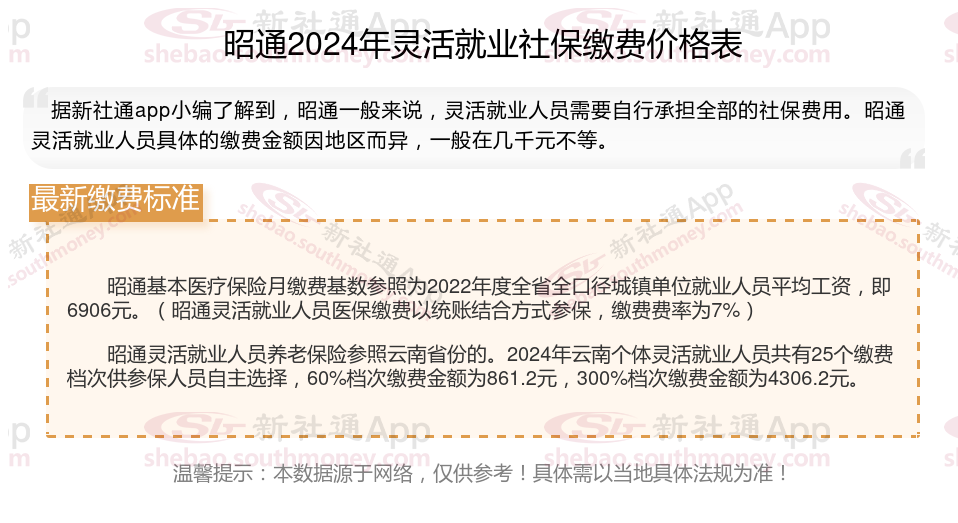 一、2024年昭通灵活就业社保缴费标准表 昭通灵活就业社保多少钱一个月?