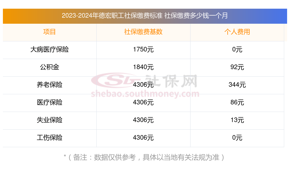 据新社通app显示,德宏社保缴费基数2023-2024年最新消息,德宏职工社保缴费详情如下: