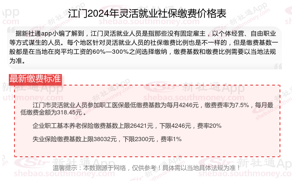 一、2024年江门灵活就业社保缴费标准表 江门灵活就业社保多少钱一个月?