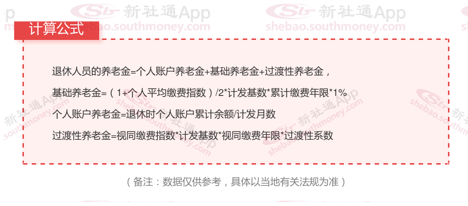 基础养老金=退休时上年度全市城镇单位就业人员月平均工资×(1+本人月平均缴费工资指数)÷2×缴费年限×1%