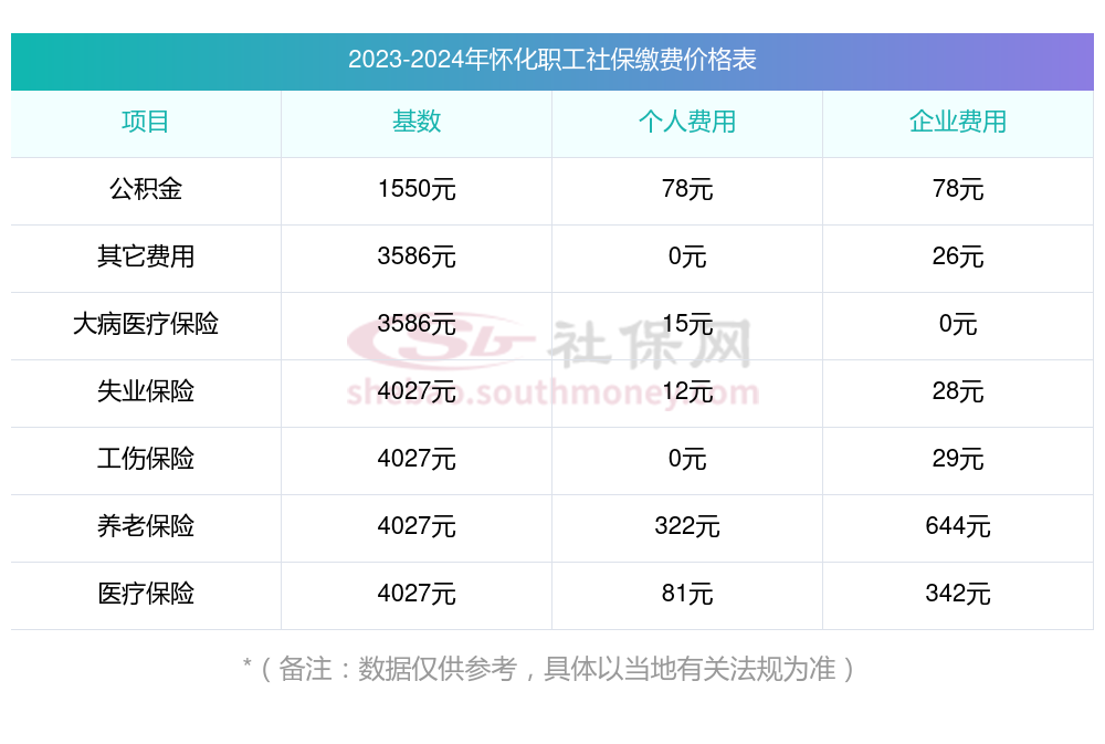 社保缴纳比例一览,社保公司和个人各交多少?下表是2023-2024年怀化社保费用明细参考,新社通app-社保缴费查询工具提供的最新数据如下: