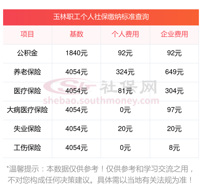 玉林社保一个月交多少钱,个人缴纳多少钱一个月?下面和新社小编一起来看看玉林最低标准社保费用明细参考,新社通app-社保缴费查询工具提供的最新数据如下: