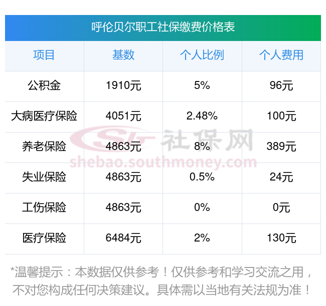 呼伦贝尔社保缴费比例是多少?