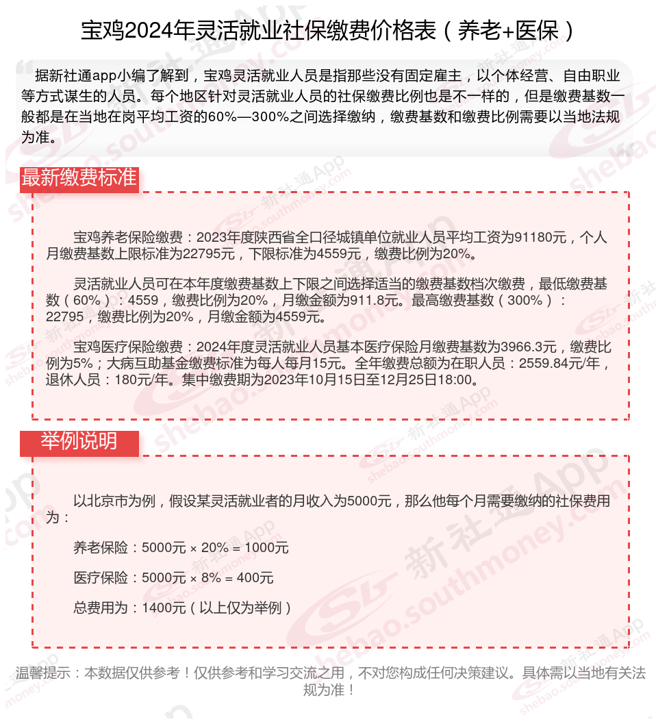 一、2024-2025年宝鸡灵活就业社保缴费标准表 宝鸡灵活就业社保多少钱一个月?