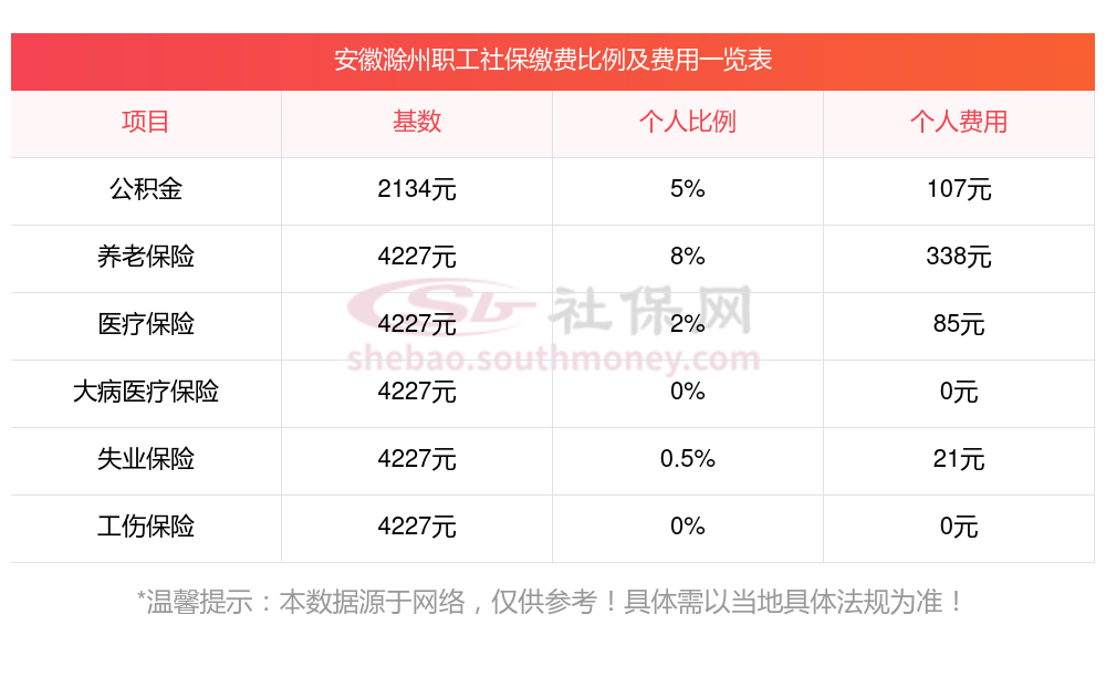 据新社通app显示,安徽滁州社保缴费基数2023-2024年最新消息,安徽滁州职工社保缴费详情如下: