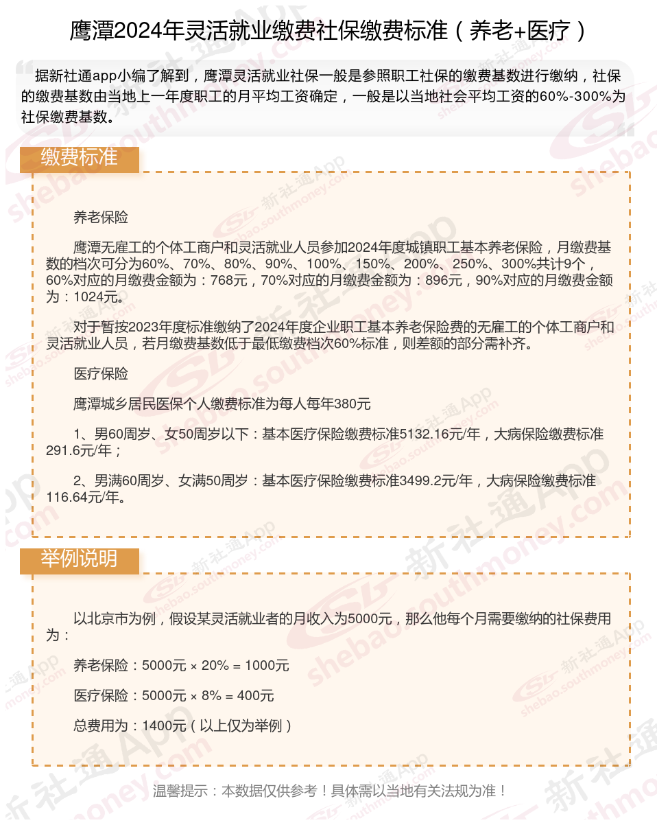 二、鹰潭2024年灵活就业社保缴费基数及比例最新消息