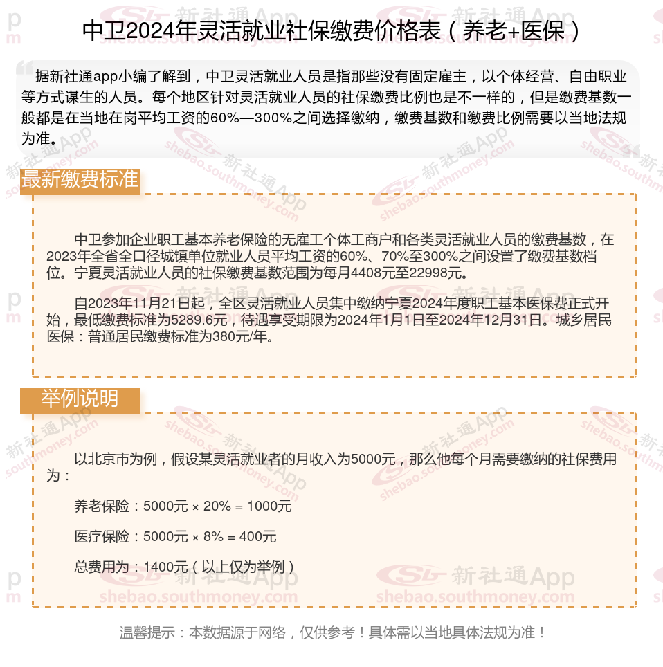 一、2024年中卫灵活就业社保缴费标准表 中卫灵活就业社保多少钱一个月?