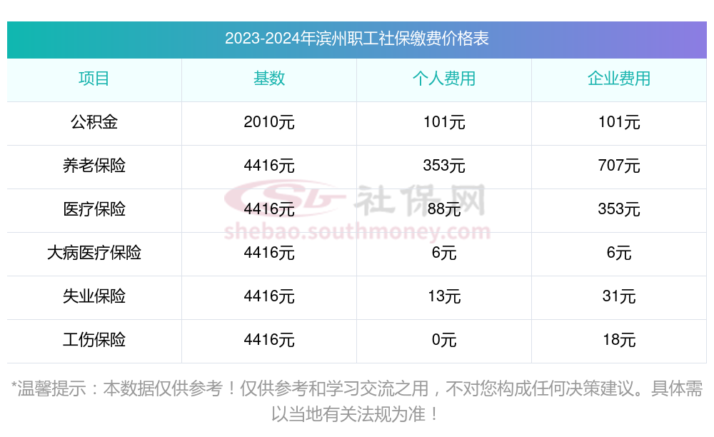 2025年滨州社保缴费多少钱?下表是2024-2025年滨州社保费用明细参考,新社通app-社保缴费查询工具提供的最新数据如下: