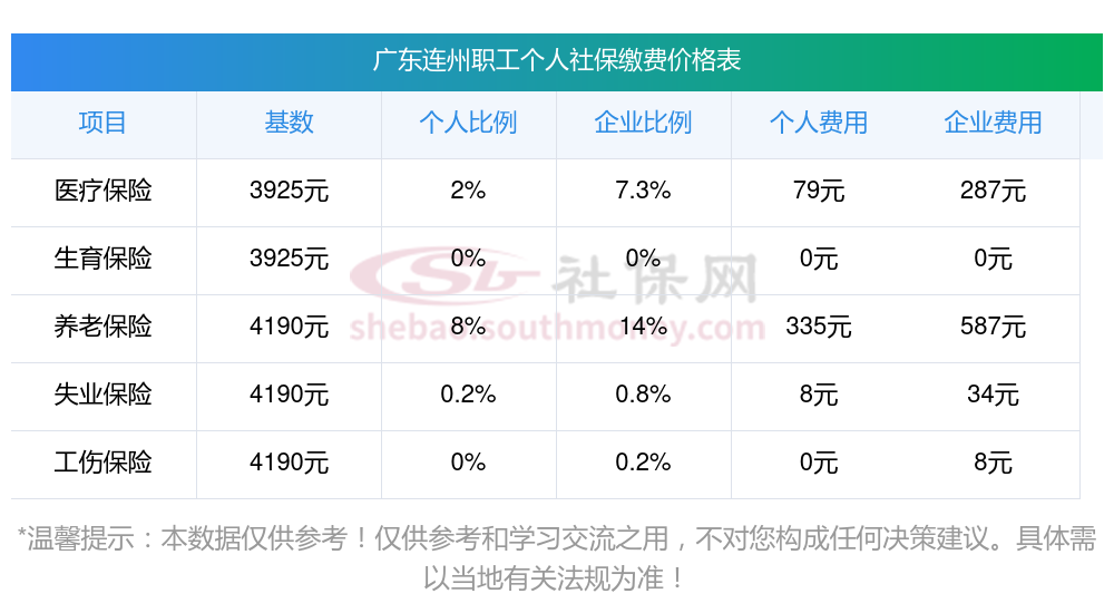 2024-2025年广东连州社保缴费标准最新是多少?据新社通app获悉,社保是为了保证劳动者在年老、失业、患病、工伤、生育而减少劳动收入时给予经济补偿的一项优惠方案。那你知道广东连州社保缴费标准是什么样的吗?看看你的社保需要缴纳多少钱?下面随新社通app小编一起来看看广东连州社保缴费标准详情。
