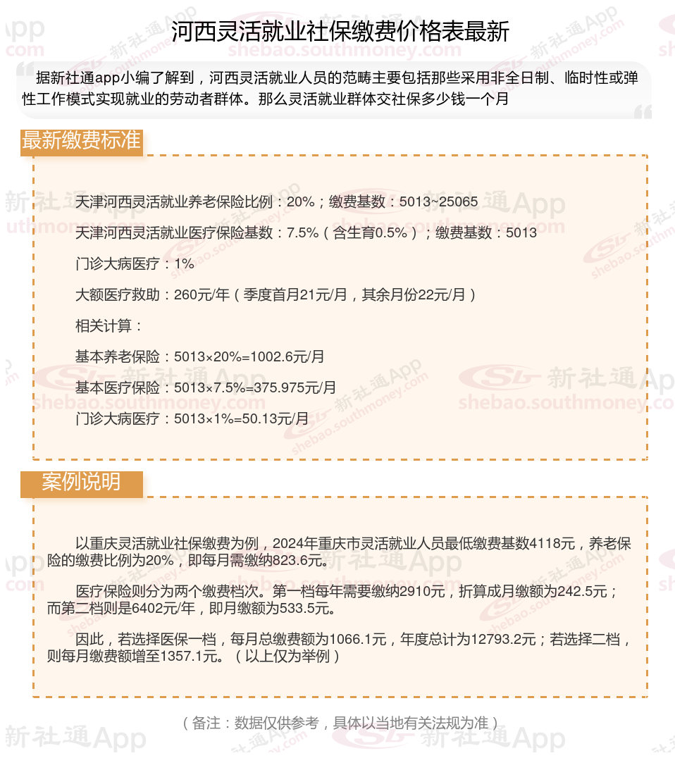 二、2024年河西灵活就业社保缴费标准,最新如下: