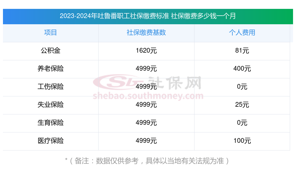 2025年吐鲁番社保缴费多少钱?下表是2024-2025年吐鲁番社保费用明细参考,新社通app-社保缴费查询工具提供的最新数据如下: