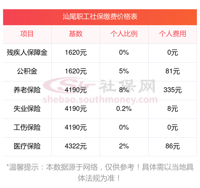 汕尾五险一金交多少钱一个月?和新社通一起来看看2024-2025年汕尾最低社保费用明细参考,新社通app-社保缴费查询工具提供的最新数据如下: