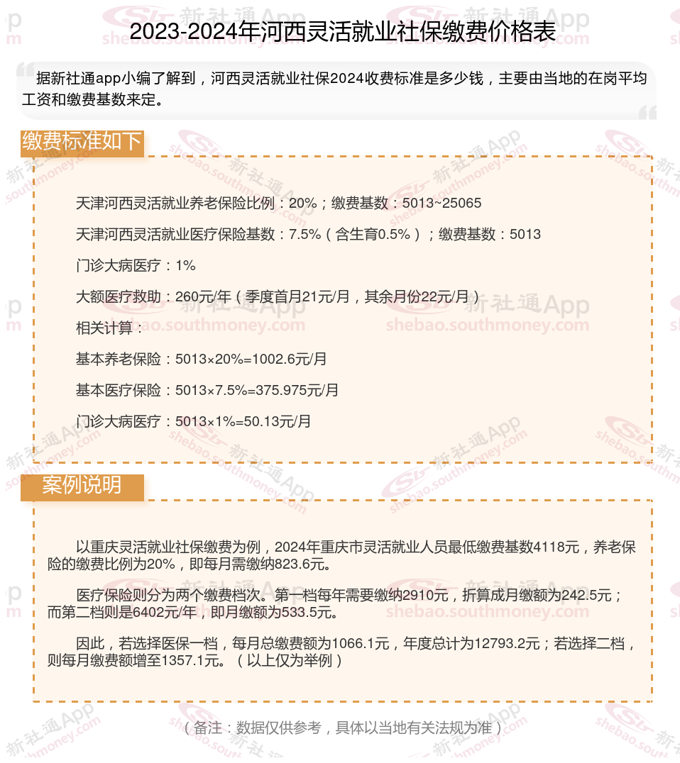 二、2024年河西灵活就业社保缴费标准表 河西灵活就业社保多少钱一个月?
