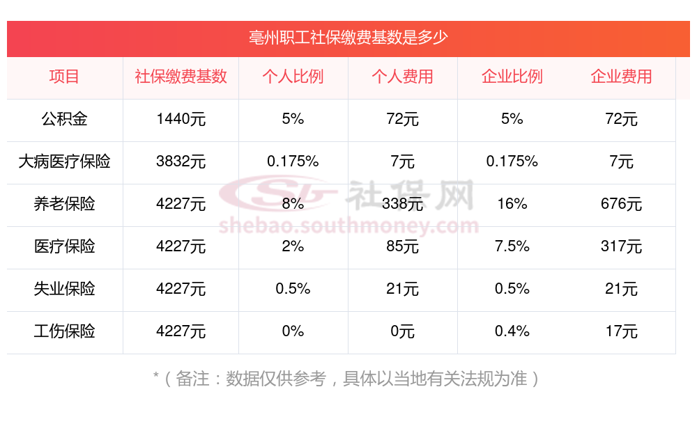 亳州社保一个月交多少钱,个人缴纳多少钱一个月?下面和社保网小编一起来看看亳州最低标准社保费用明细参考,新社通app-社保缴费查询工具提供的最新数据如下:
