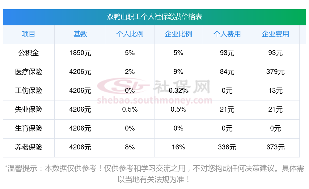 双鸭山职工社保缴费多少钱?双鸭山职工社保缴费基数最新参考为:3579.00,具体如下:
