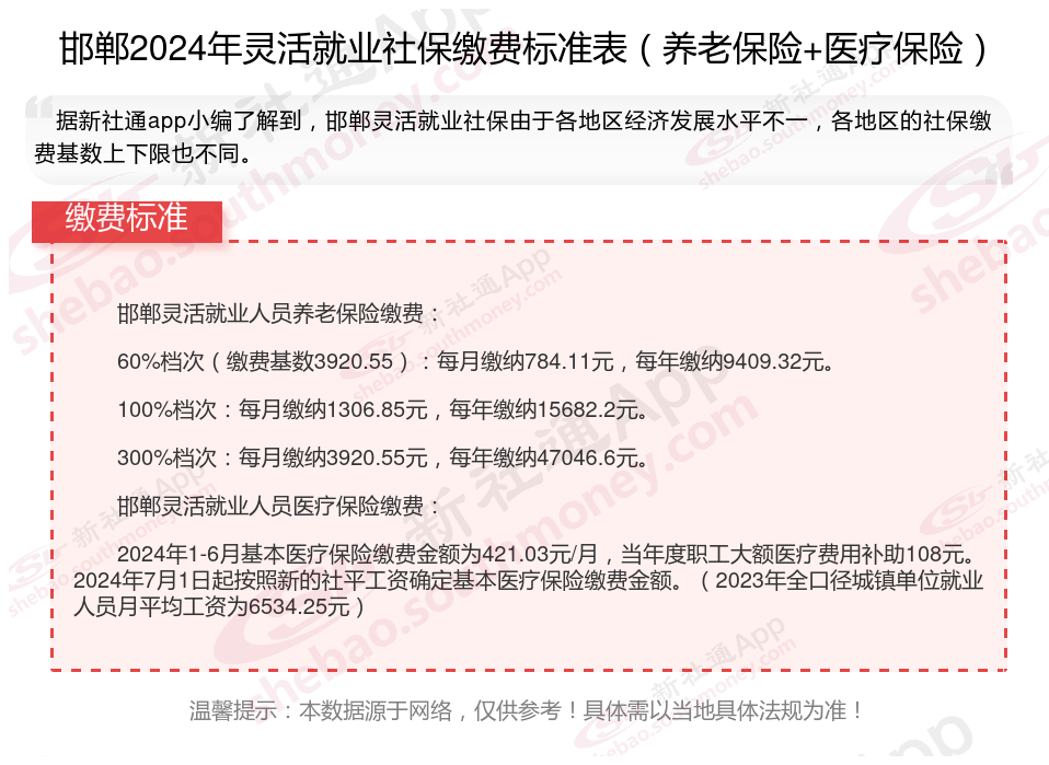 二、邯郸2024年灵活就业社保缴费基数、比例最新消息