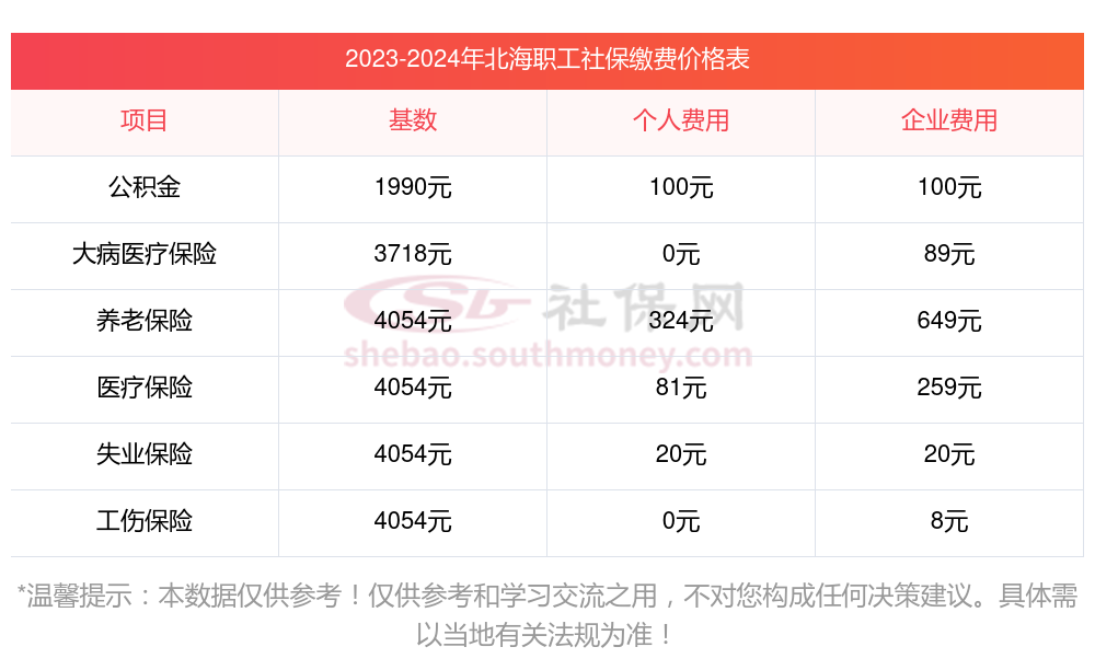 一、北海职工社保缴费多少钱一个月,2023-2024年职工和公司社保各交多少钱?