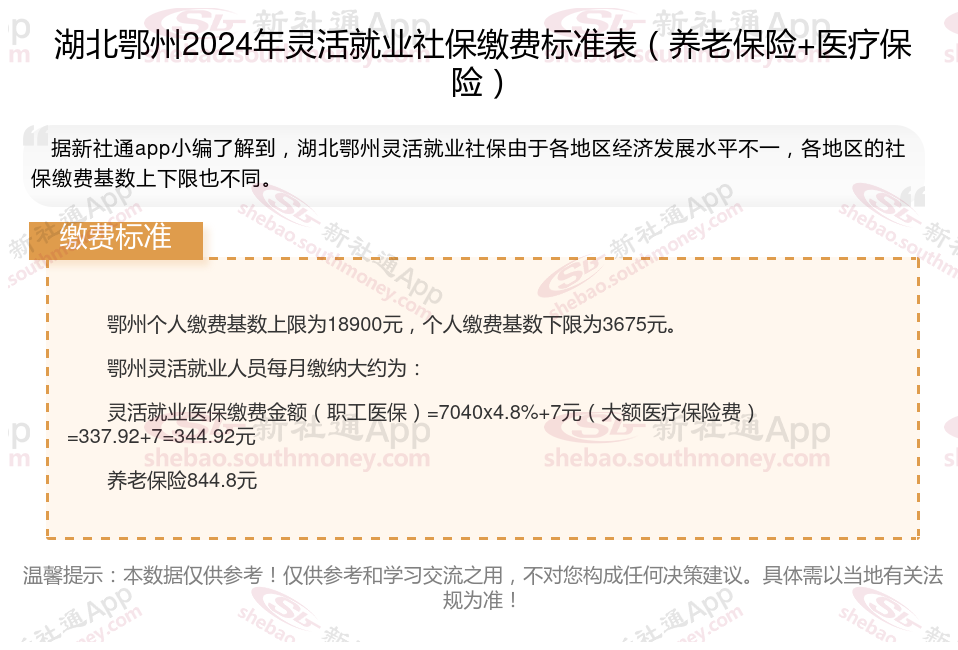 二、湖北鄂州2024年灵活就业社保缴费基数及比例最新消息