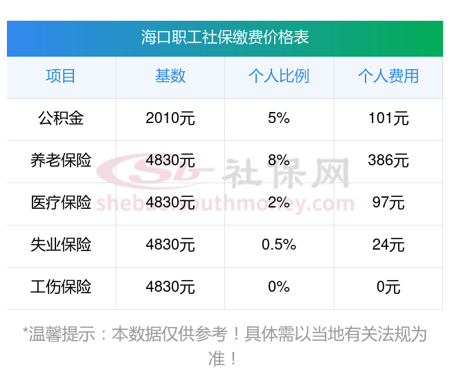 海口五险一金交多少钱一个月?和新社丫丫一起来看看2024-2025年海口最低社保费用明细参考,新社通app-社保缴费查询工具提供的最新数据如下: