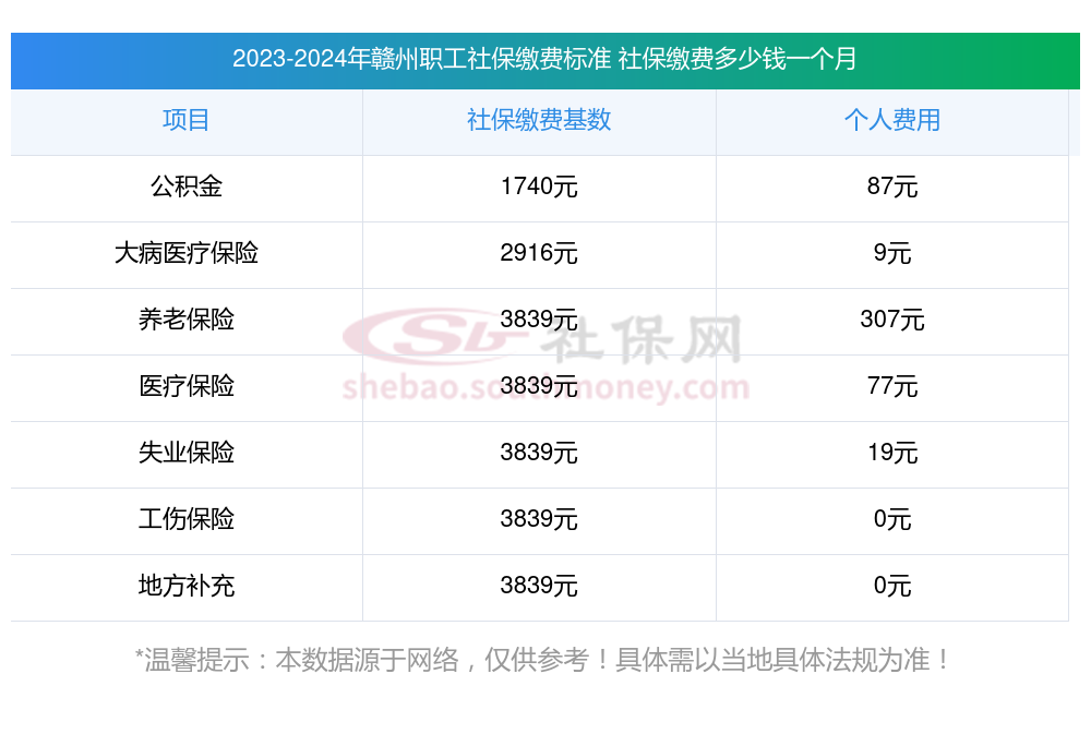 据新社通app显示,赣州社保缴费基数2025年标准,(社保最低一个月要交多少钱)赣州社保费用如下: