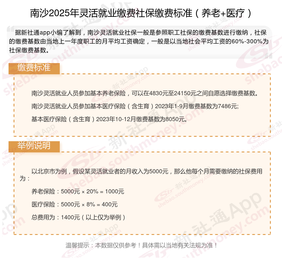对于灵活就业者来说,社保缴纳是一个非常重要的问题。那么,2025年南沙灵活就业社保怎么交?一个月要交多少呢?领取待遇如何计算的?接下来随新社通APP小编一起了解南沙灵活就业社保缴费具体详情吧。