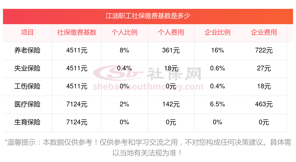 据新社通app显示,江油社保缴费基数2023-2024年最新消息,江油职工社保缴费详情如下: