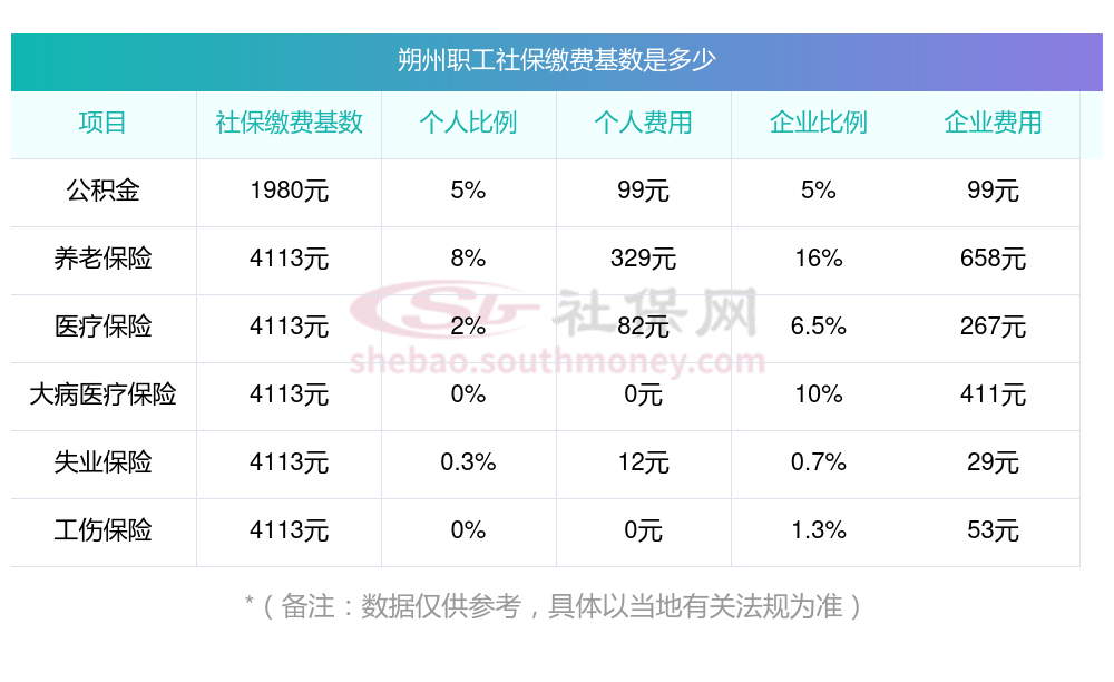2025年朔州社保缴费多少钱?下表是2023-2024年朔州社保费用明细参考,新社通app-社保缴费查询工具提供的最新数据如下: