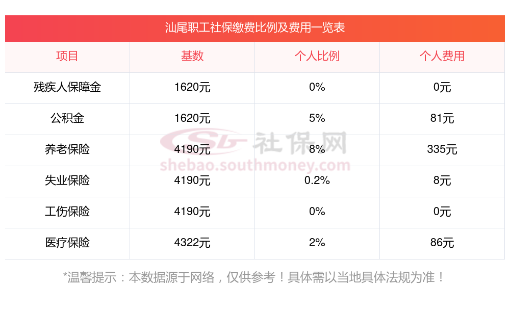 汕尾社会保险一个月要多少钱?下面和社保网一起来看看2024-2025年汕尾最低标准社保费用明细参考,新社通app-社保缴费查询工具提供的最新数据如下: