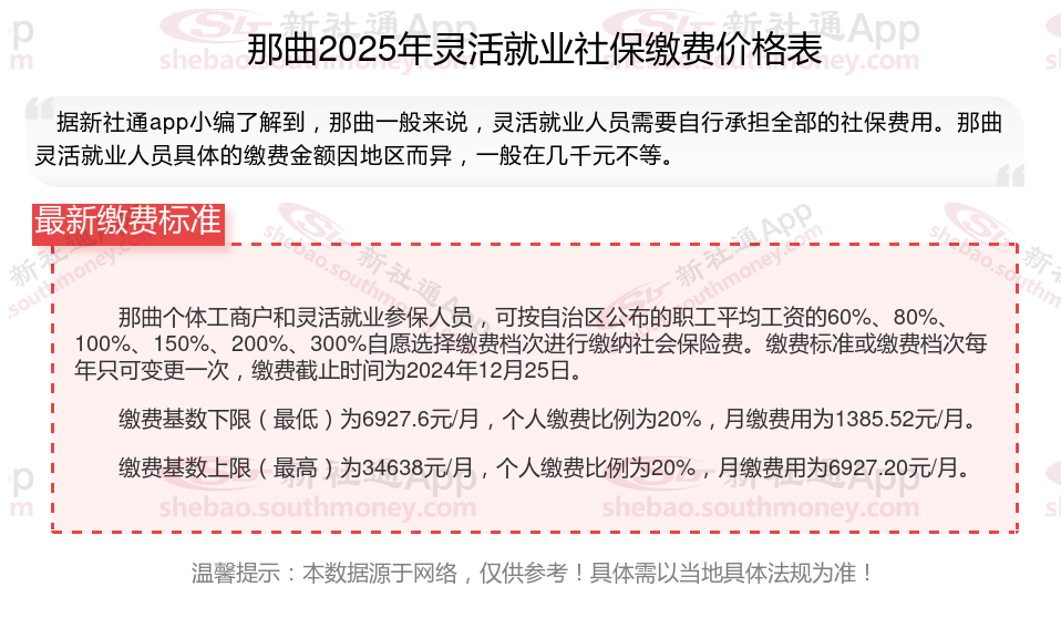 二、那曲2024年灵活就业社保缴费基数、比例最新消息