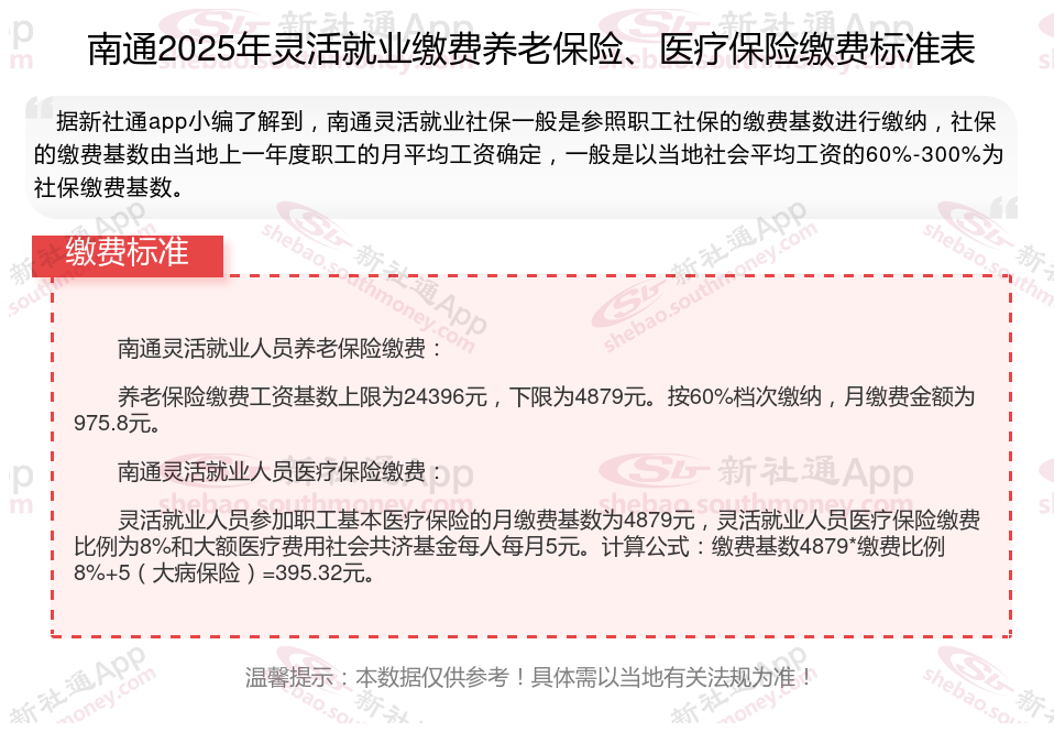 一、2024年南通灵活就业社保缴费标准表 南通灵活就业社保多少钱一个月?