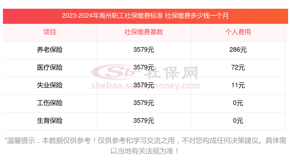 二、禹州职工社保缴费多少钱一个月,2023-2024年职工和公司社保各交多少钱?