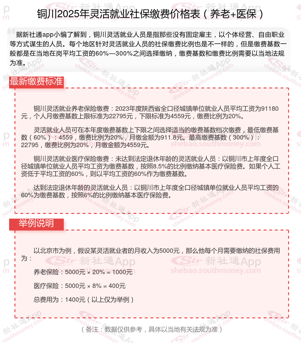 一、2024年铜川灵活就业社保缴费标准表铜川灵活就业社保多少钱一个月?