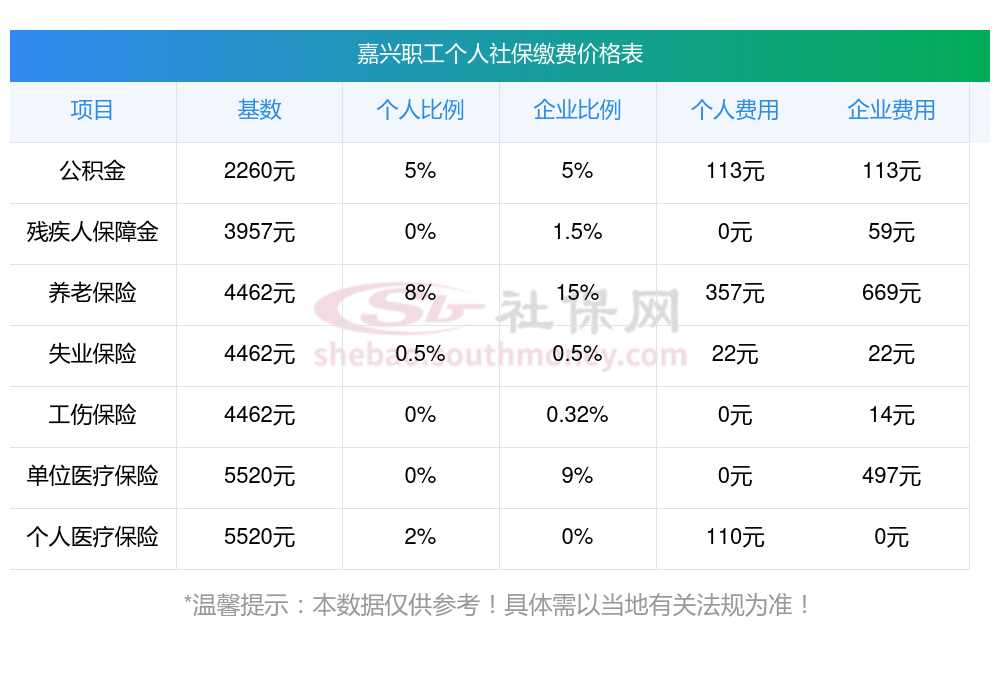 五险一金扣多少?你知道吗?下表是2024-2025年嘉兴社保费用明细参考,新社通app-社保缴费查询工具提供的最新数据如下: