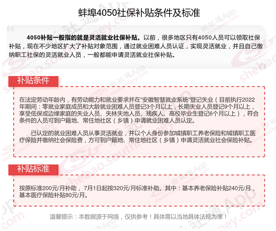 二、蚌埠灵活就业4050社保补贴标准2025年(4050社保条件是什么)