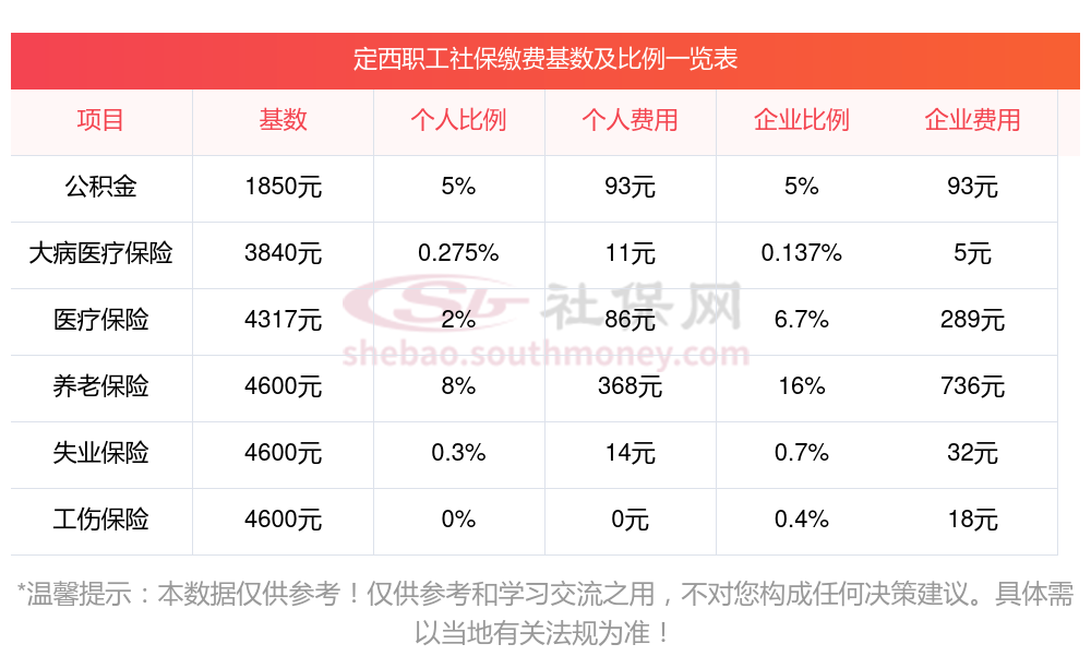 定西社保多少钱一个月?下面和社保网app一起来看看2025年定西最低标准社保费用明细参考,新社通app-社保缴费查询工具提供的最新数据如下: